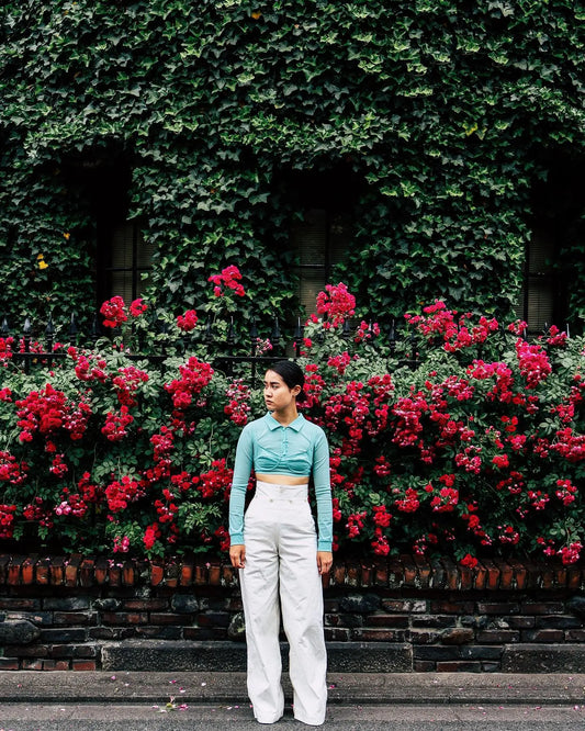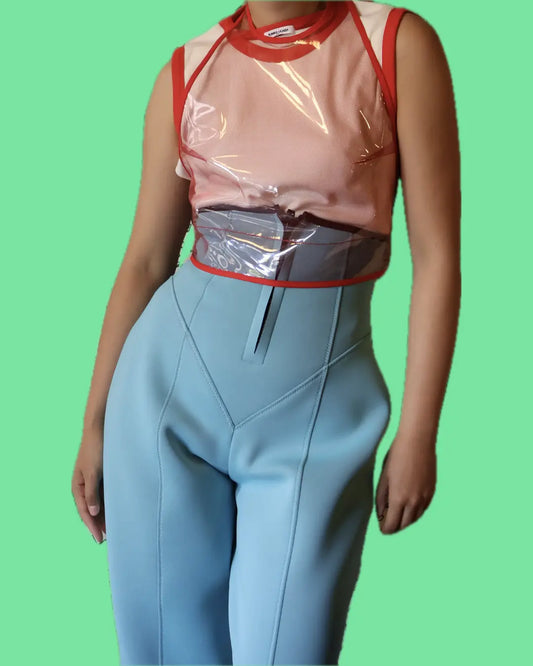 FUMIKA UCHIDA / URETHANE HIGH WAIST PANTS / AQUA BLUE