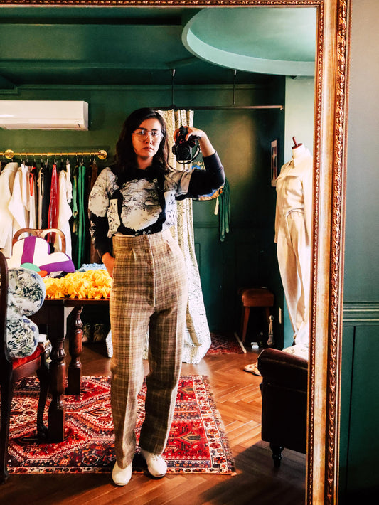 FUMIKA UCHIDA/ PLAID TWEED HIGH-WAIST SLACKS / PLAID BEIGE