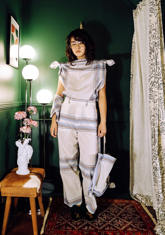 FUMIKA UCHIDA / HANDKERCHIEF BIB TOP / SAX PLAID